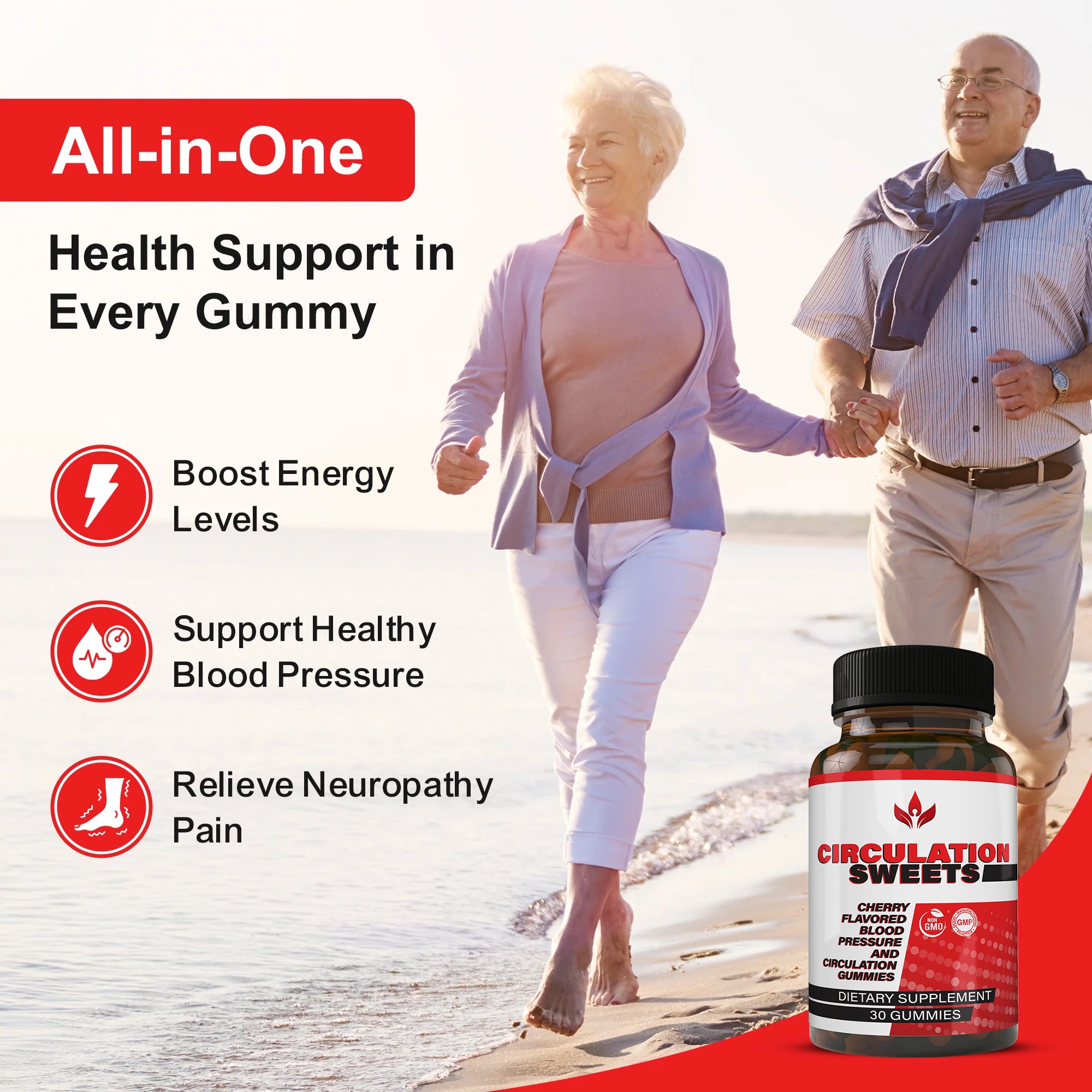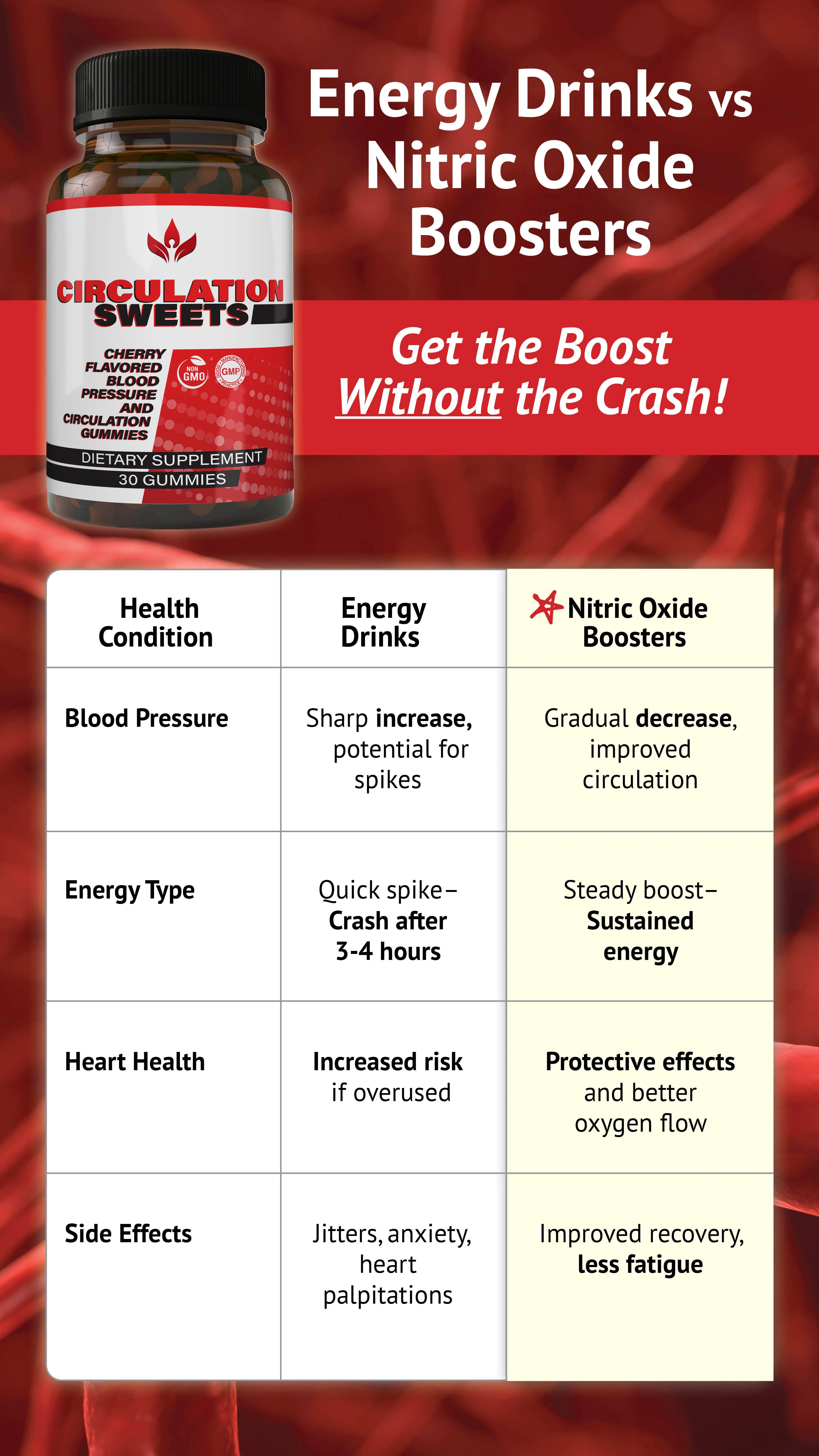 Boost NO, Boost You Simply pop 2 Circulation Sweets daily—each 30-day bottle (60 gummies) delivers the perfect dose to: