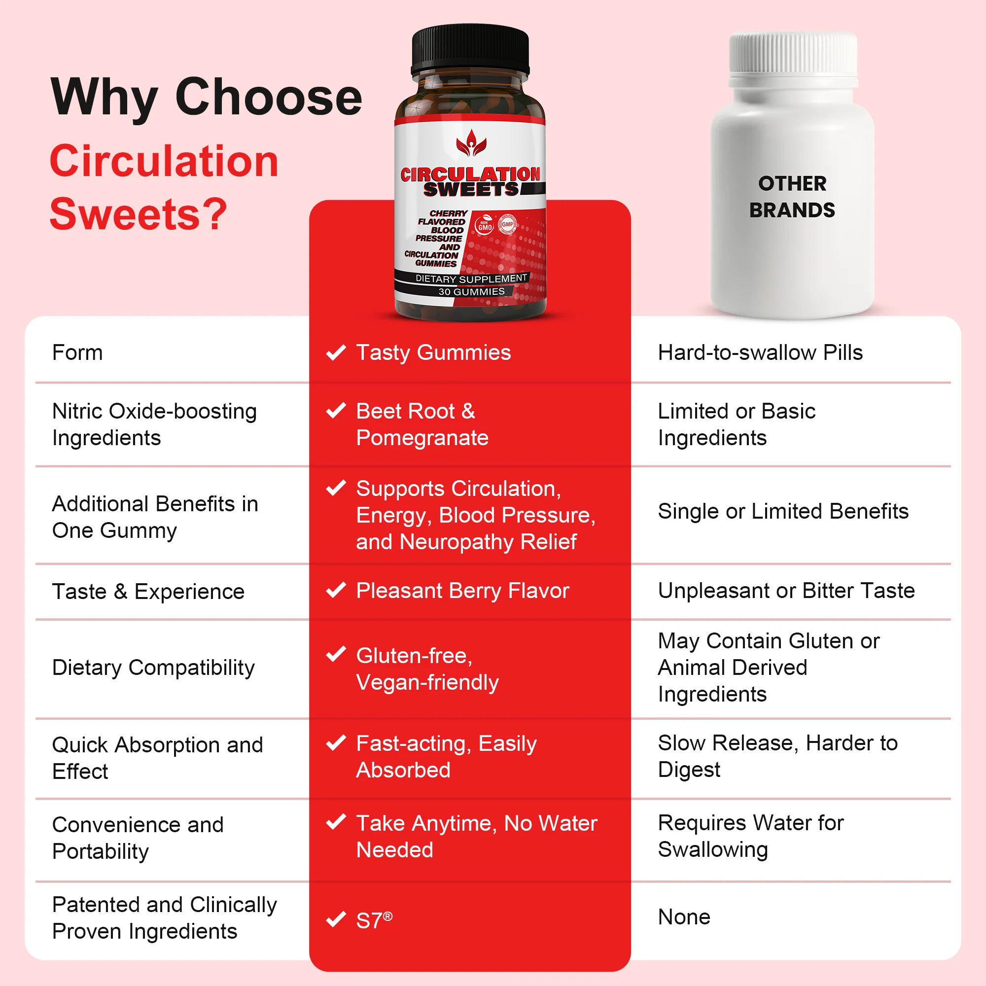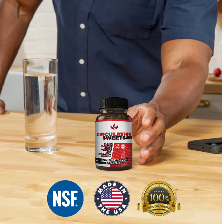 Circulation Sweets is a doctor-approved formula that combines potent nitric oxide boosters—S7™, pomegranate juice powder, and beetroot powder—to enhance blood flow throughout the body, particularly targeting energy, healthy blood pressure, and tingling pain in the legs and feet.